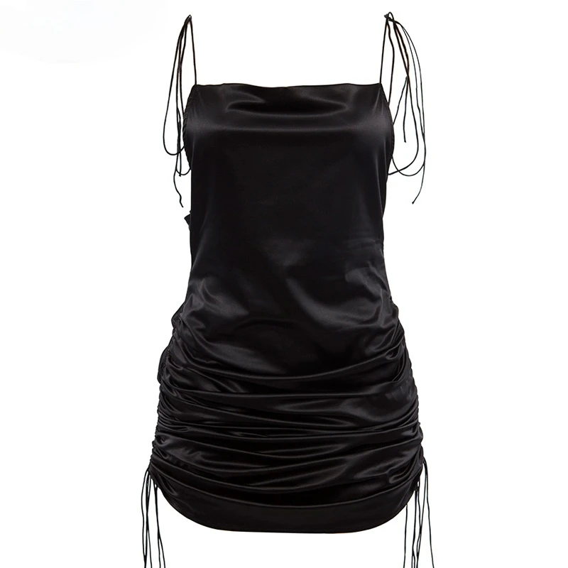 Fashion Women Solid Spaghetti Straps Backless Sleeveless Sexy Dresses Bottom Length Adjustable Ladies Casual Dress Ne'w