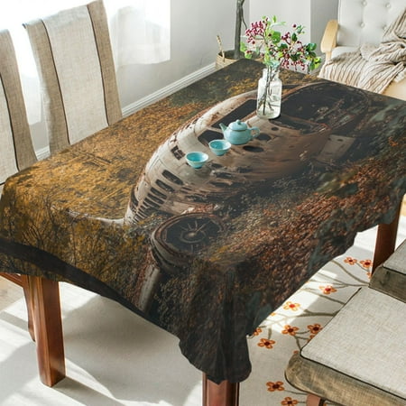 WOBOGO Abandoned Airplane Square Tablecloth 60×60in Polyester Fabric Tablecloth Washable Dust Resistant Wrinkle Resistant