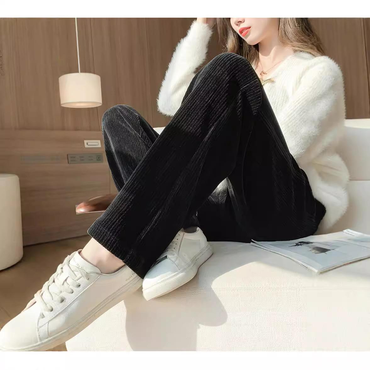 Вельветовые прямые узкие повседневные брюки для женщин на осень и зиму, новые утолщенные теплые с высокой посадкой, маленькие белые брюки XXL