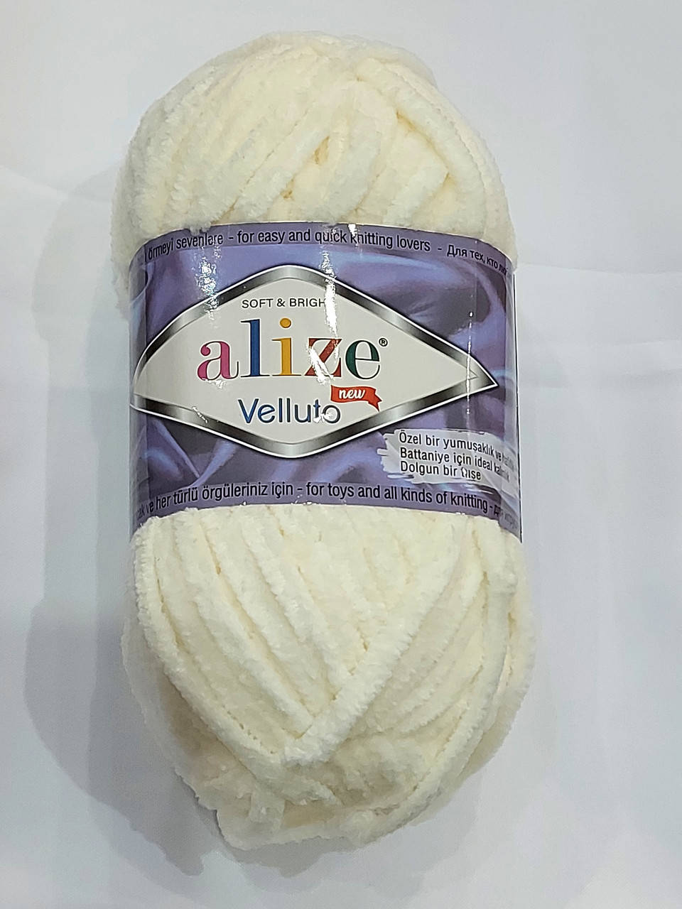 Велюровая плюшевая пряжа Ализе Велуто Alize Velluto 68 м, 100 грамм, 100% микрополиэстер, Молочна # 62, Молочный
