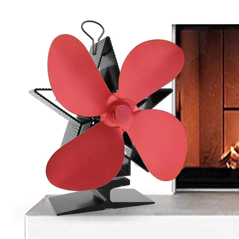 Вентилятор для камина горящая печь с четырьмя листами обогрева вентиляторный обогреватель Тихая плита Красный термоэлектрический вентиля...