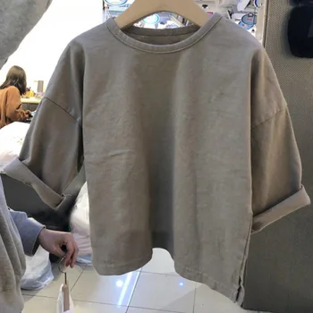 New Autumn Korean Chic Preppy Style Simple Cotton Sweatshirts Vintage Off Shoulder Casual Loose Long Sleeve Women Tops 17576