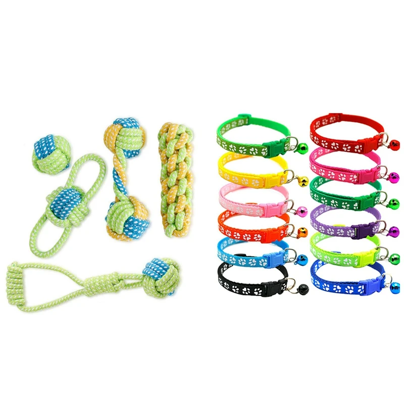 Веревка для маленьких собак и щенков, жевательные игрушки для прорезывания зубов, чистый ошейник для кошек и колокольчик с безопасной быстр...