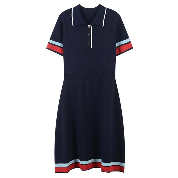 neck knitting dress summer short sleeve temperament female clothing striped casual new womens apparel womens lapel, Black;gray