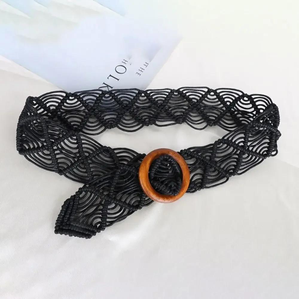 Веревка, ручная работа, сделай сам, пляжное платье, пояса, аксессуары, этнический стиль, плетеный пояс, женская поясная цепочка, круглая деревянная пуговица чёрный