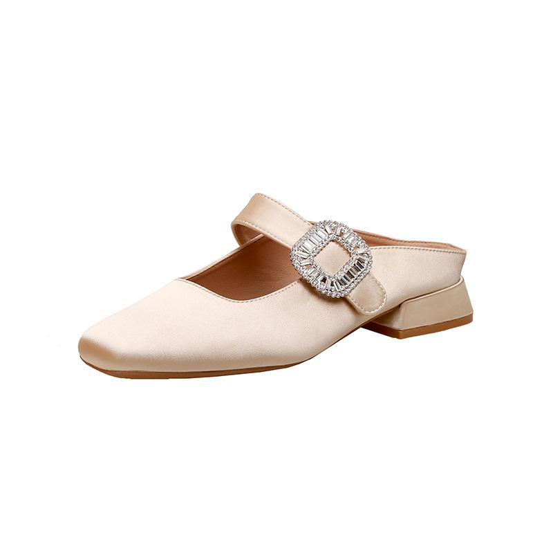 Версия из коровьей кожи того же стиля, сверкающая бриллиантовая пряжка, малая ширина квадратного носка, темпераментная модель «одно слово» на низком каблуке, женские сандалии-полушлепанцы 2 40 шампанского