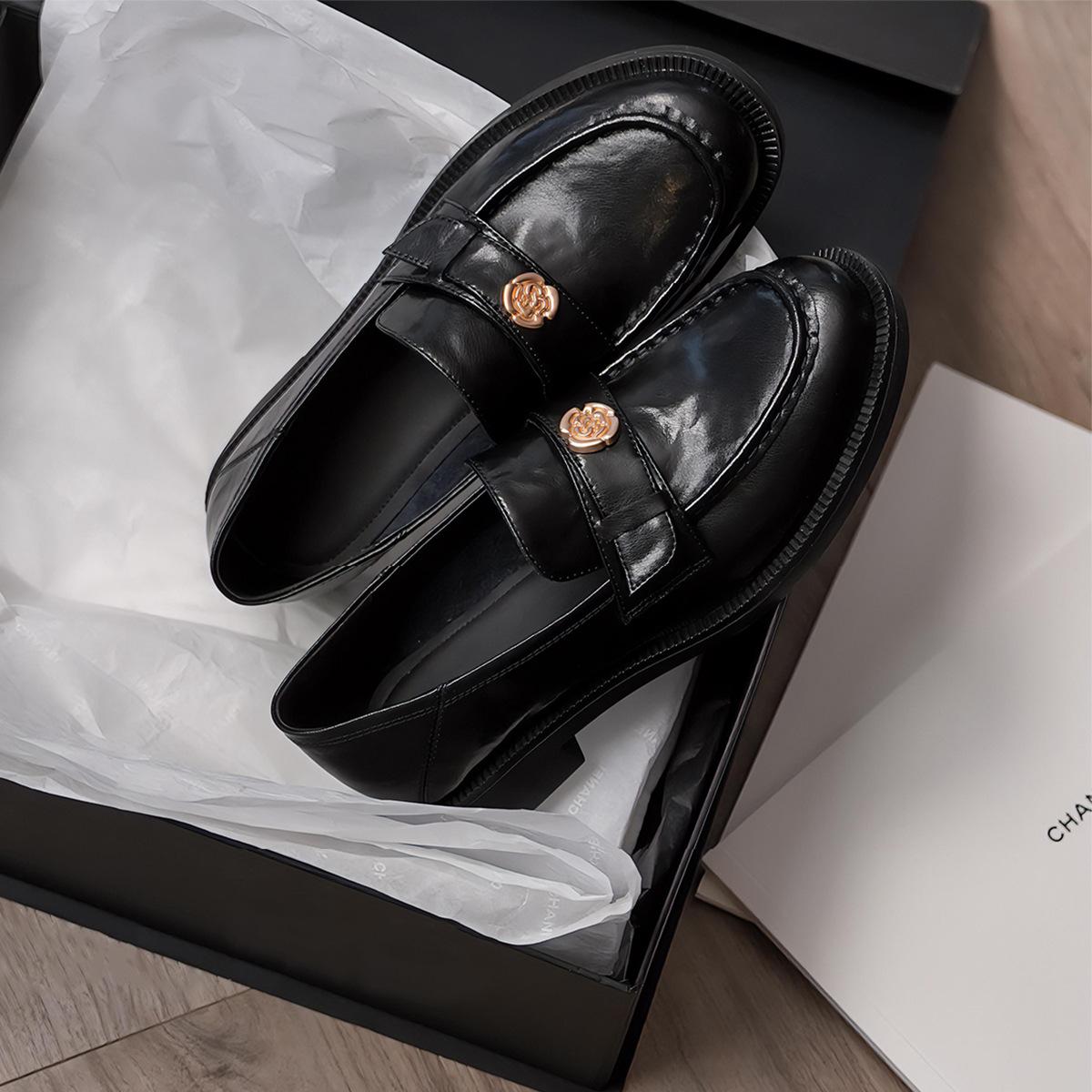 Версия из коровьей кожи~ Натуральная кожа камелия золотые монеты толстая подошва ленивые женские туфли одинарки для работы универсальные на толстом каблуке маленькие кожаные туфли 40