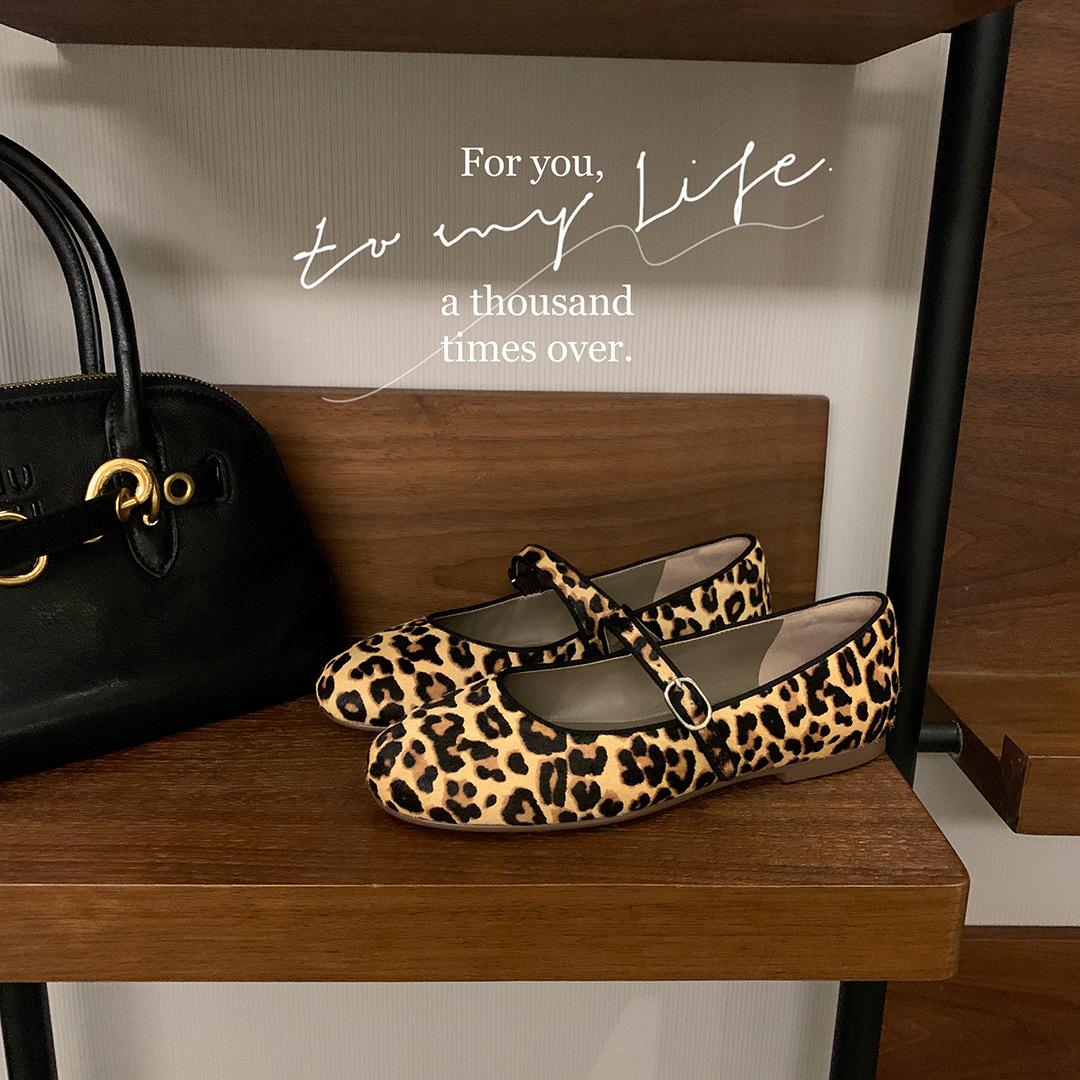 Версия из овчины~ Виноградная мать, тот же стиль, леопардовый принт, ремень на одно слово, плоские туфли-лодочки Мэри Джейн, женские туфли бабушки, натуральная кожа b 40