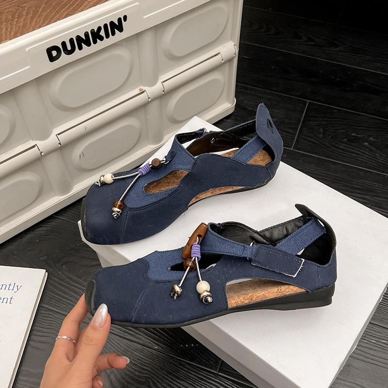 Версия из овчины~ нишевый универсальный ретро-стиль Т-образный ремешок внутренняя танкетка сандалии с закрытым носком женские с бахромой на плоской подошве одинарная обувь женская 40 темно-синий
