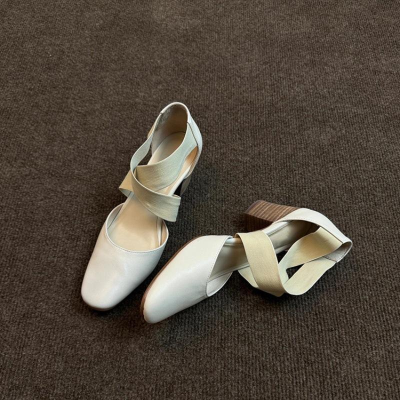 Версия, которую легко носить~ Новые ретро универсальные балетки на высоком каблуке для детей, толстый каблук, крестообразный ремешок, полые, повседневные, с закрытым носком, одинарные туфли 39 белый