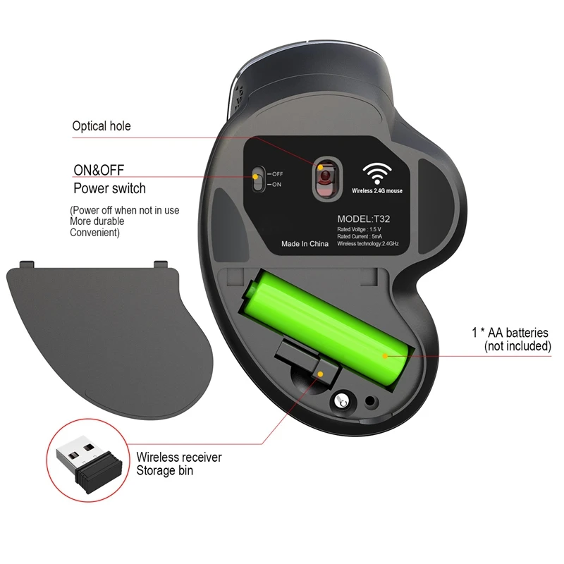 Вертикальная мышь, эргономичный дизайн, беспроводная мышь 2,4G с удобным захватом, игровая мышь с максимальным разрешением 3600 точек/дюйм для ...