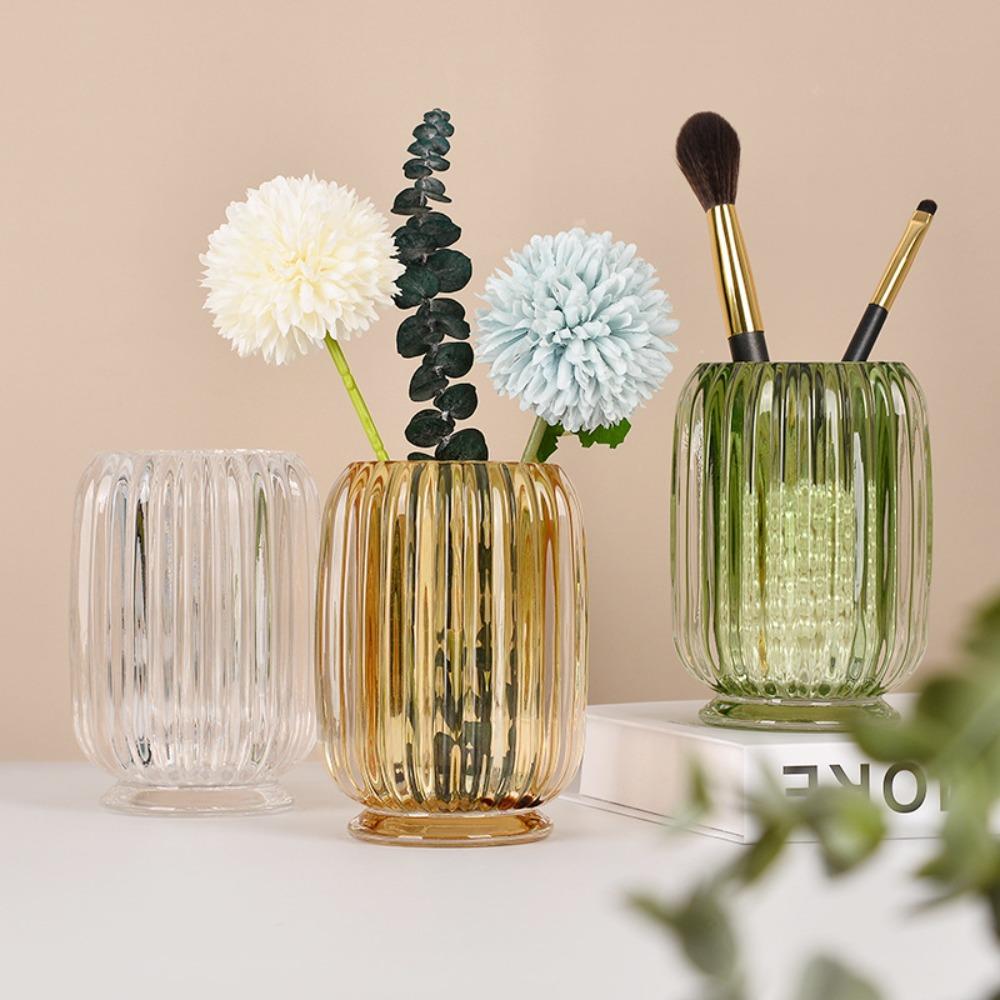 Вертикальная полосатая стеклянная подставка для ручек Ins Vase Storage Box Органайзер для ручек Настольная коробка для принадлежностей янтарь