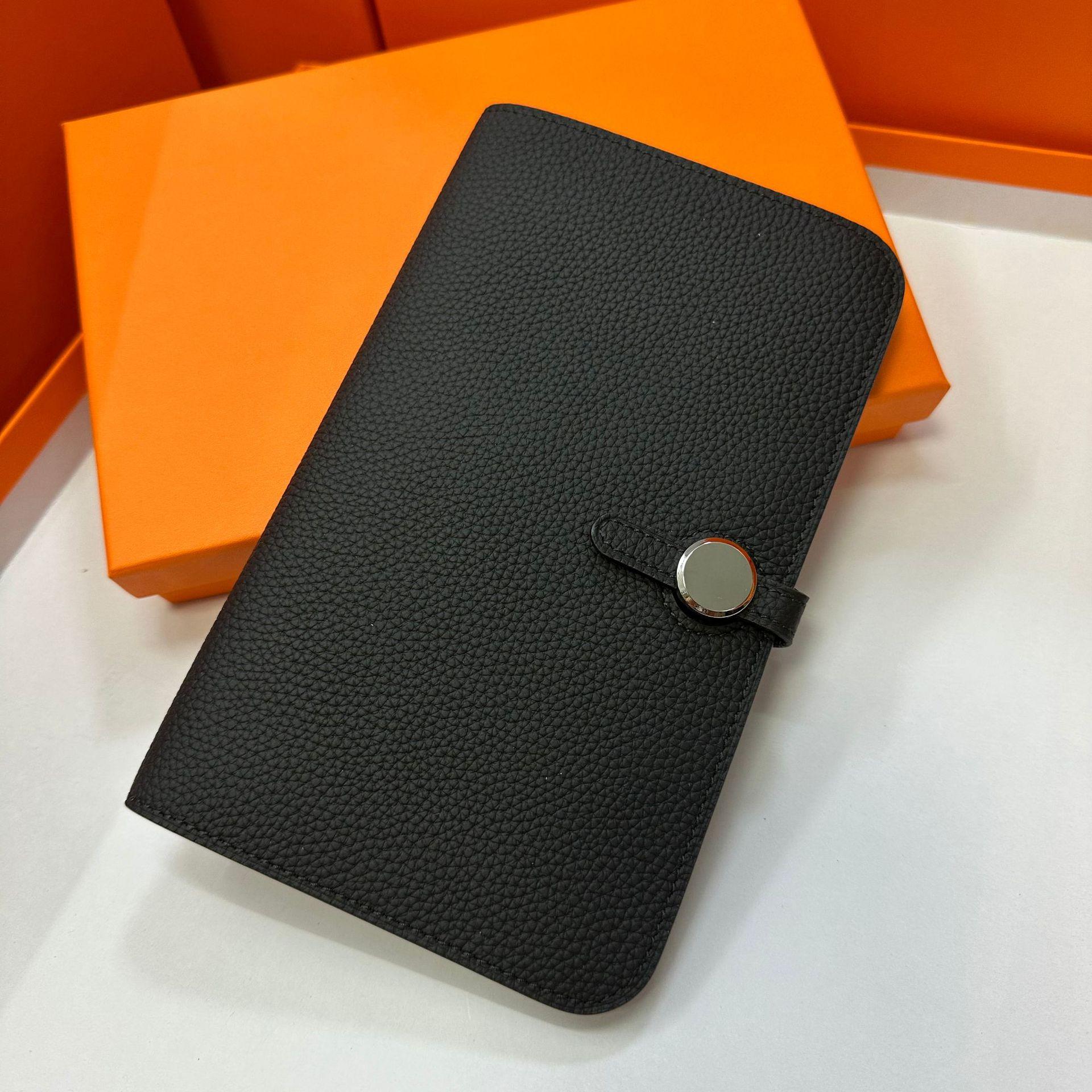 Верхний слой из коровьей кожи Togo, портативная сумка для паспорта, длинный кошелек, универсальная новая кожаная сумка большой вместимости для мелочи 20x3x12cm чёрный