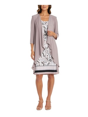 R-M RICHARDS Женское Бежевое Каскадное Платье Без Рукавов С Рукавами 3/4 С Открытым Передом, Бежевый