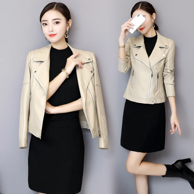 Весеннее женское кожаное пальто 4XL, черная кожаная куртка, Женская облегающая Повседневная Осенняя кожаная одежда, базовая замша на молнии