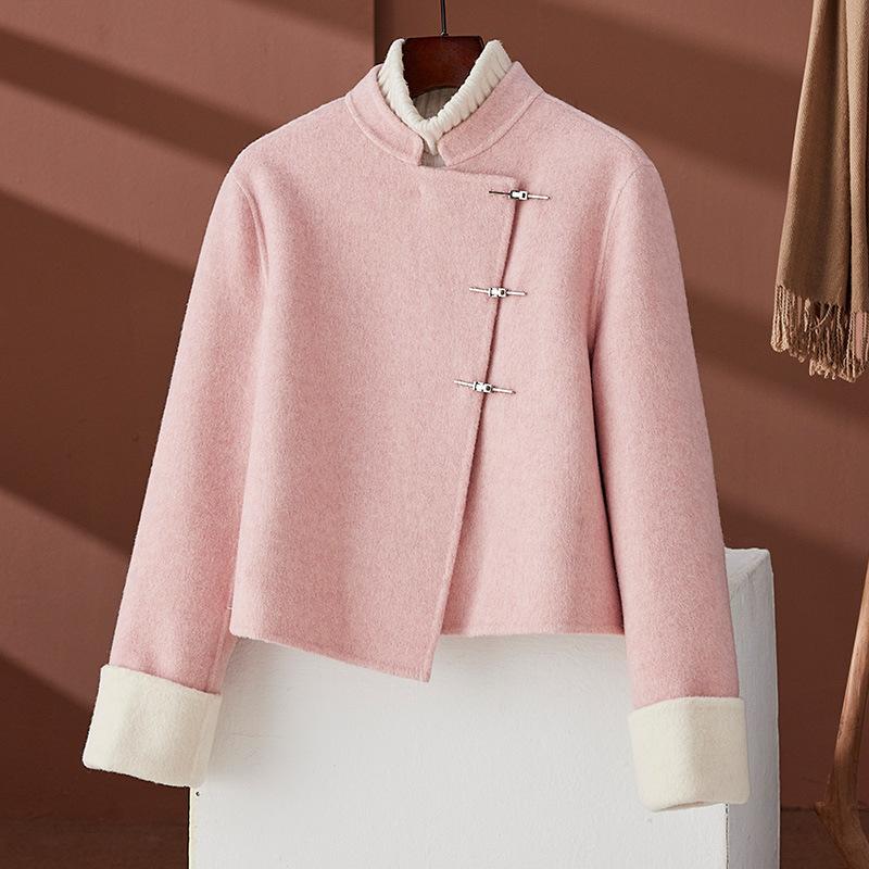 Весеннее новое двустороннее флисовое шерстяное пальто для женщин, маленькое, короткое, приталенное и тонкое пальто M розовый