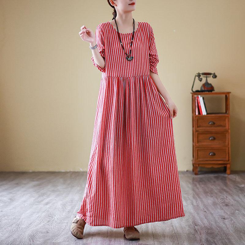 Весеннее платье из хлопка и льна с цветочным принтом в стиле «отпуск» и круглой горловиной в стиле ретро XXXL