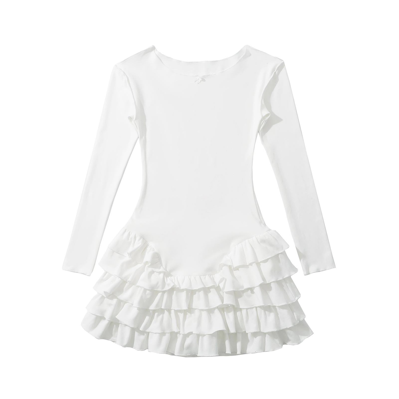 Весеннее платье с оборками, кружевом и пышными рукавами - Стиль острой девчонки Small белый