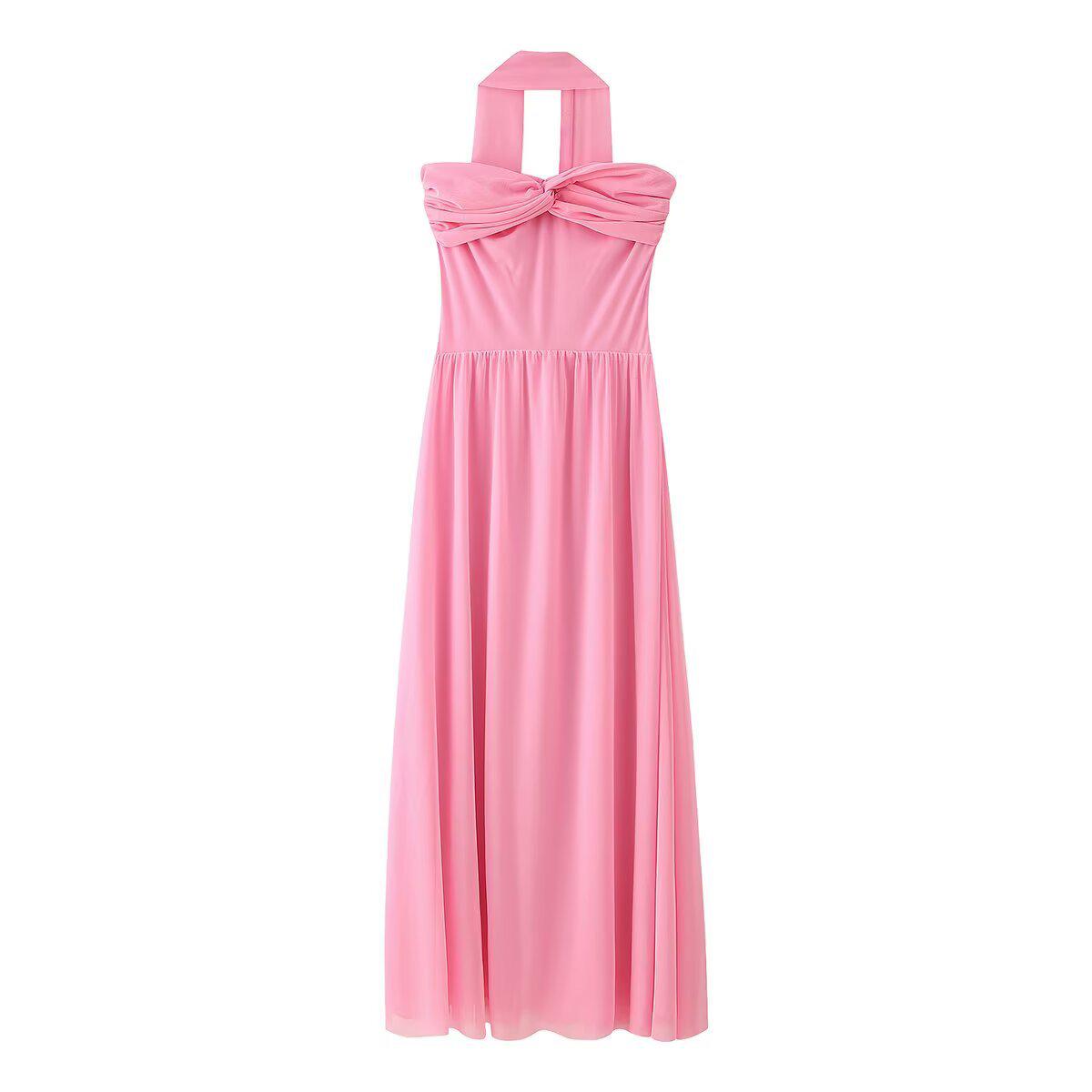 Весеннее платье 2025 года для женщин в европейском и американском стиле без бретелек из сетки с лентами Small