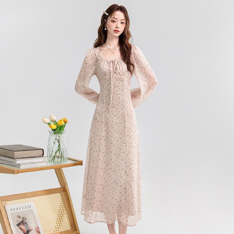 Весенне-летнее длинное платье с цветочным принтом из французского розового шифона, завязывающееся, стройнящее L розовый/цветочный
