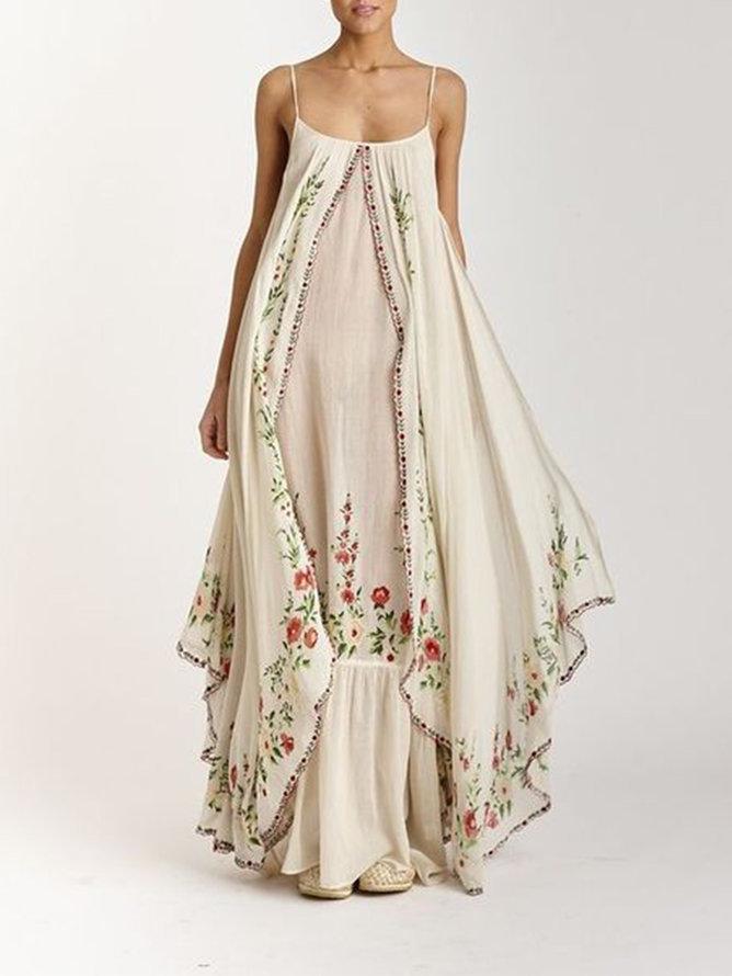 Весенне-летнее европейское и американское женское макси-платье с цветочным принтом S бежевый