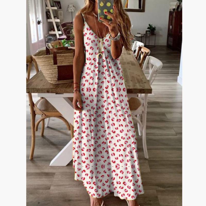 Весенне-летнее платье, женское зеленое длинное платье с v-образным вырезом и цветочным принтом, повседневное богемное женское пляжное платье без рукавов L белый