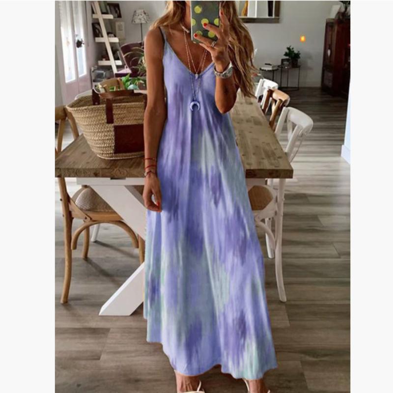 Весенне-летнее платье, женское зеленое длинное платье с v-образным вырезом и цветочным принтом, повседневное богемное женское пляжное платье без рукавов XXXXXL светло-фиолетовый