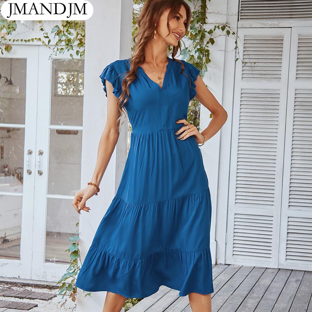 Весенне-летнее платье трапециевидной формы для отдыха и отдыха с V-образным вырезом, сексуальные однотонные платья с летающими рукавами, S-XL
