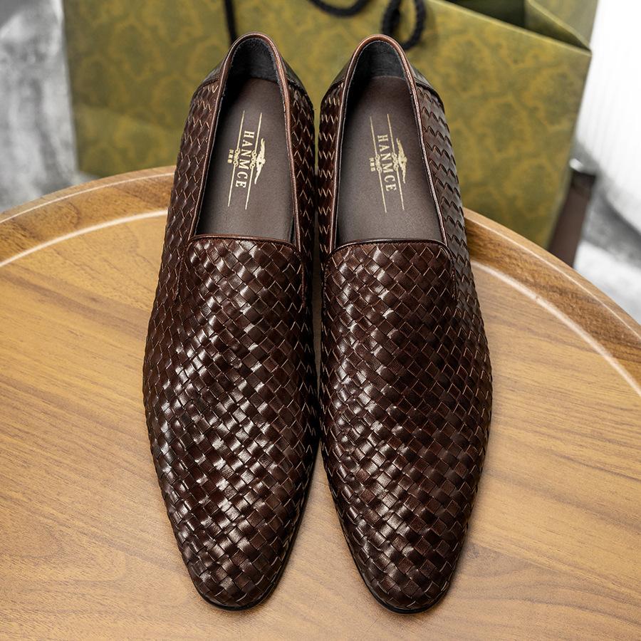 Весенне-летние лоферы мужская обувь воловья кожа ручной работы плетеная кожаная обувь мужская обувь для бизнеса мужские лоферы модная обувь простая 44 темно-коричневого