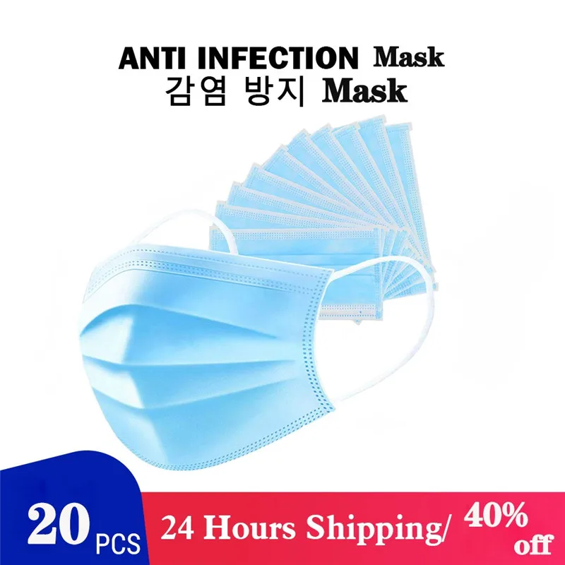 20Pcs Disposable Mask 3 Layer Nonwove medical masks Face Mask Anti-Dust Earloop Mouth Mask