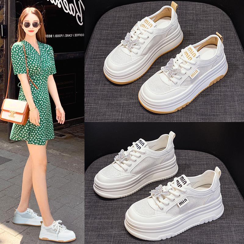 Весенне-летние новые белые туфли на платформе с сетчатой поверхностью, женские маленькие повседневные универсальные дышащие кроссовки на платформе высотой 6 см