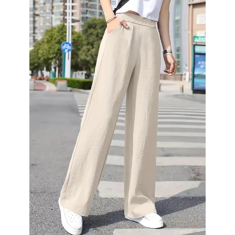 Весенне-летние новые женские широкие брюки из хлопка и льна, однотонные прямые брюки, повседневные брюки с карманами и высокой талией, свободные узкие повседневные брюки