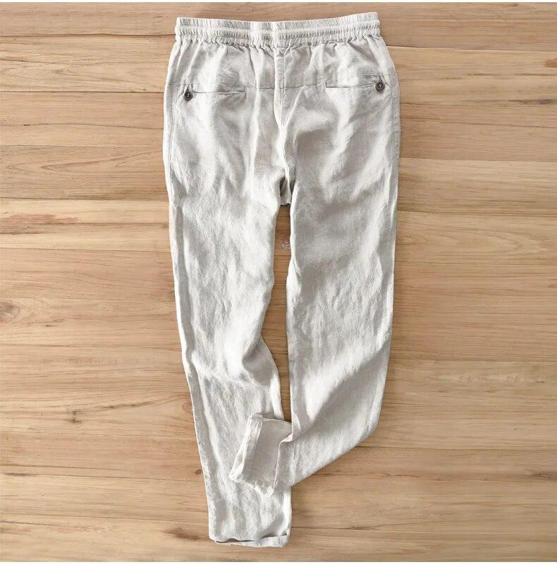 Весенне-летние новые мужские брюки из натурального льна, длинные брюки, однотонные брюки с эластичной резинкой на талии, повседневные брюки 38 синий