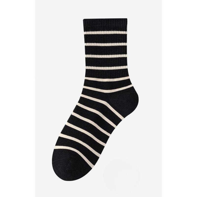 Весенне-летние носки до середины икры, полосатые женские носки, хлопковые носки против пиллинга, модные и универсальные носки 1 pair чёрный