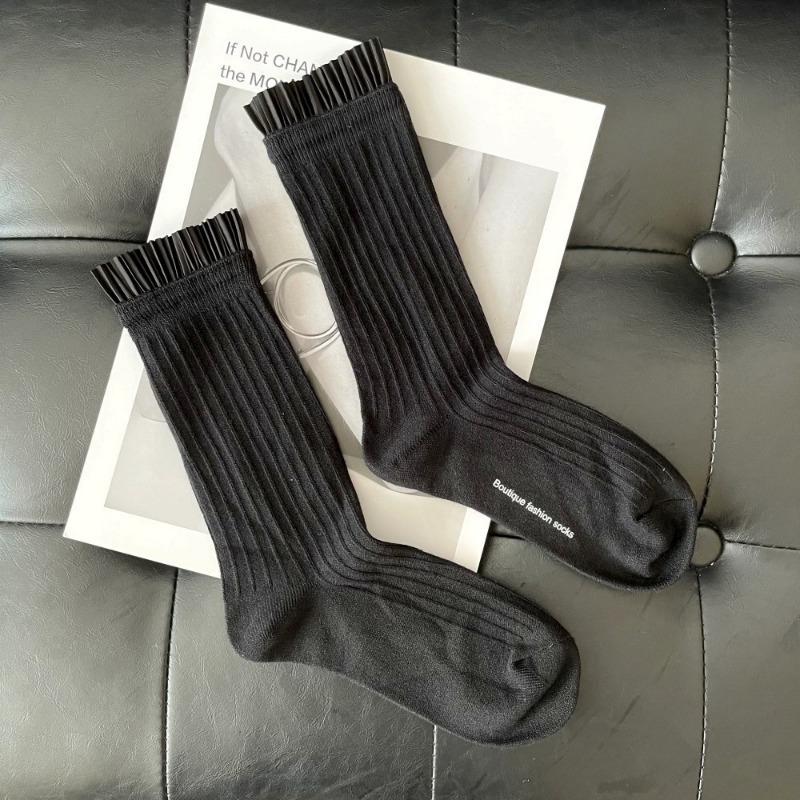 Весенне-летние носки из чистого кружева в балетном стиле, уникальные однотонные черные и белые носки до середины икры в вертикальную полоску 1 pair чёрный
