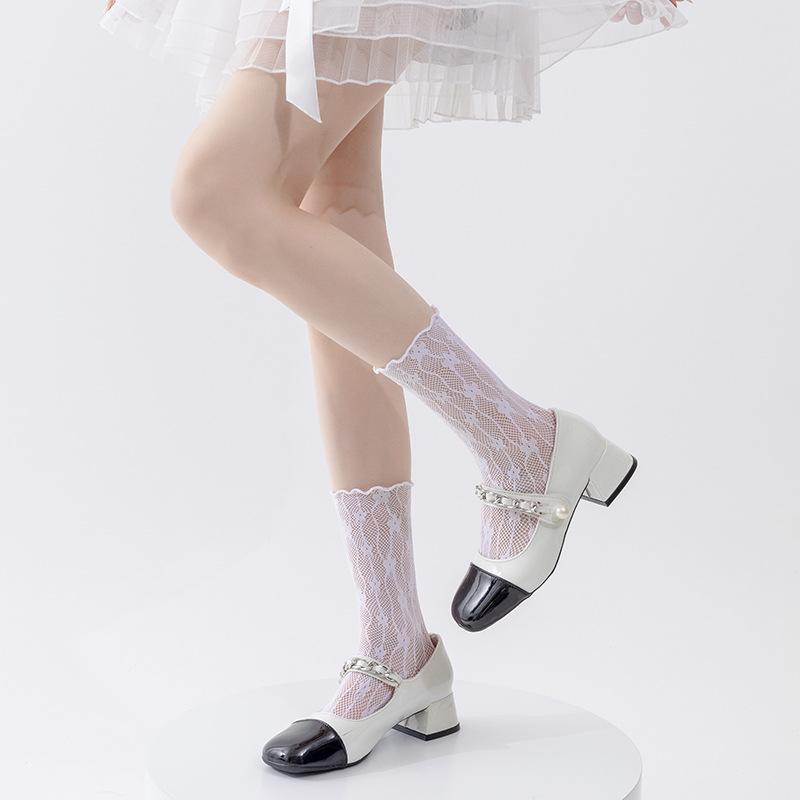 Весенне-летние тонкие ажурные гольфы до середины икры в стиле балетной лолиты с маленькими цветами, белые черные гольфы с оборкой 1 pair белый
