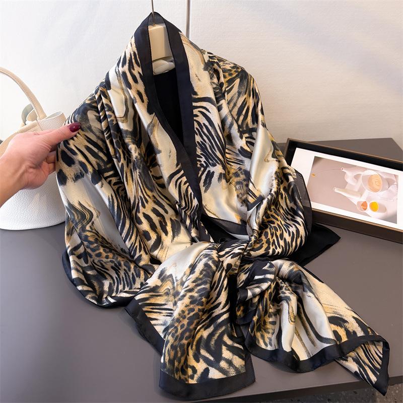 Весенне-летний тонкий дикий леопардовый принт, имитация шелка, парчовый солнцезащитный шелковый шарф, длинный шарф, шаль, универсальный платок, шарф 180*80cm