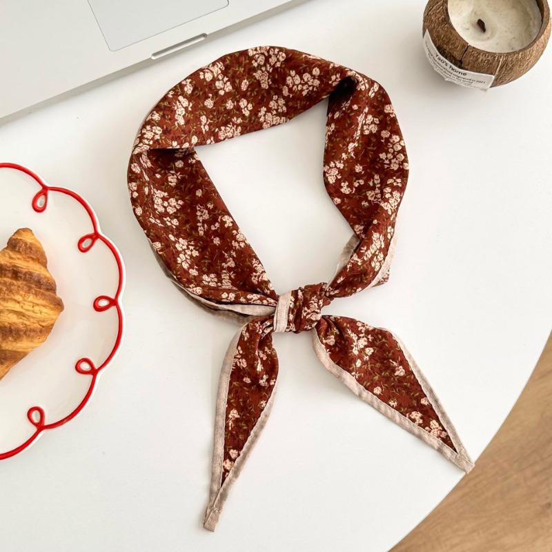 Весенне-летний хлопково-льняной поясной треугольный платок, маленький платок, повязка на голову, ретро цветочный платок для волос