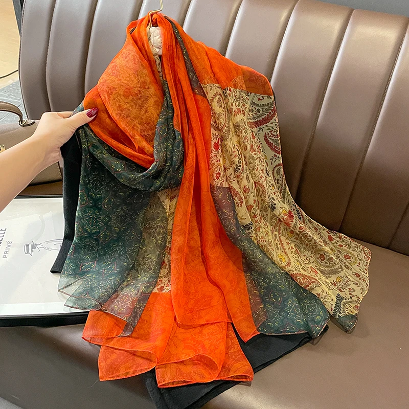 Весенне-летняя женская модная дорожная Солнцезащитная шаль с принтом пейсли женский тонкий мягкий длинный Шелковый фуляр шифоновый шарф Gauzy