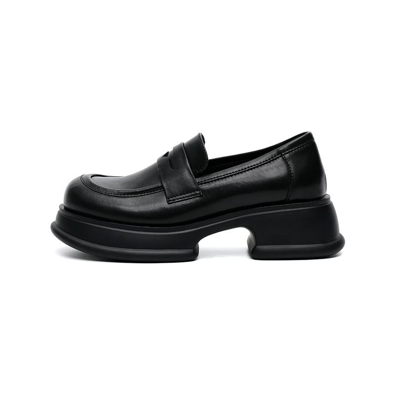 Весенне-летняя женская обувь на платформе. Завышенные лоферы. Маленькие кожаные туфли в британском стиле. Мокасины на блочном каблуке. Повседневные универсальные туфли на одной педали. 40 чёрный