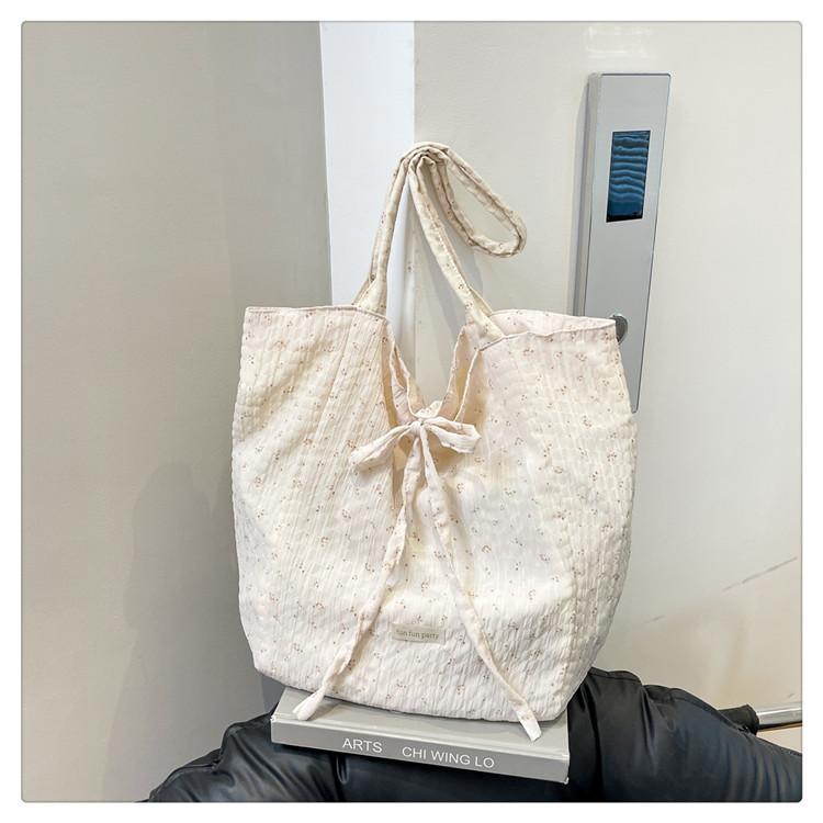 Весенне-летняя милая цветочная наплечная сумка из нежного шифона, французская сумка-тоут большой вместимости, дорожная сумка для девочки бежевый