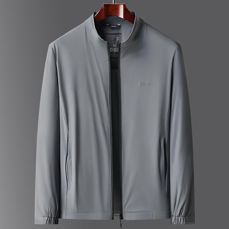 Весенне-летняя молочно-шелковая нейлоновая эластичная солнцезащитная куртка мужская тонкая куртка с воротником-стойкой для мужчин среднего возраста 4XL