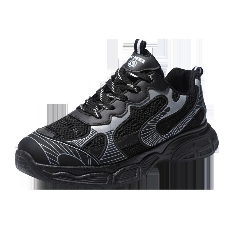 Весенне-летняя новая мужская обувь, дышащая сетчатая обувь с мягкой подошвой, утолщенная, увеличивающая рост, мужская универсальная спортивная обувь 44 чёрный