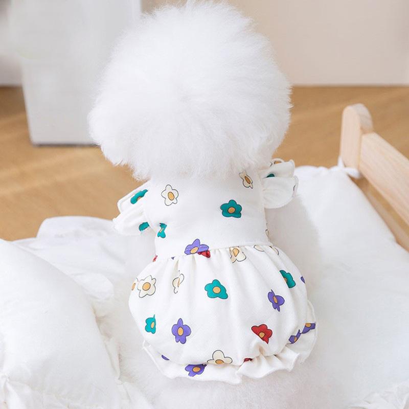 Весенне-летняя одежда для собак, тонкое дышащее милое платье с цветочным принтом, юбка с изображением кошки, одежда для плюшевых собак в стиле принцессы S