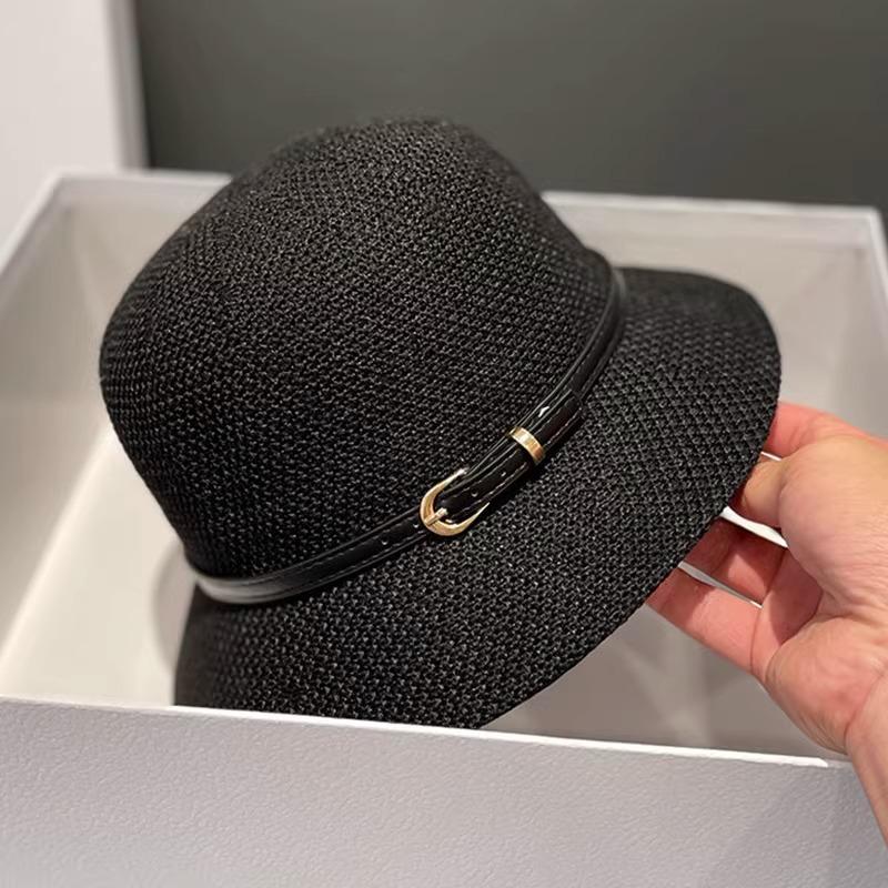 Весенне-летняя пряжка для ремня шляпа рыбака детская модная затеняющая темпераментная шляпа-ведро полая дышащая дорожная солнцезащитная шляпа M(56-58cm)