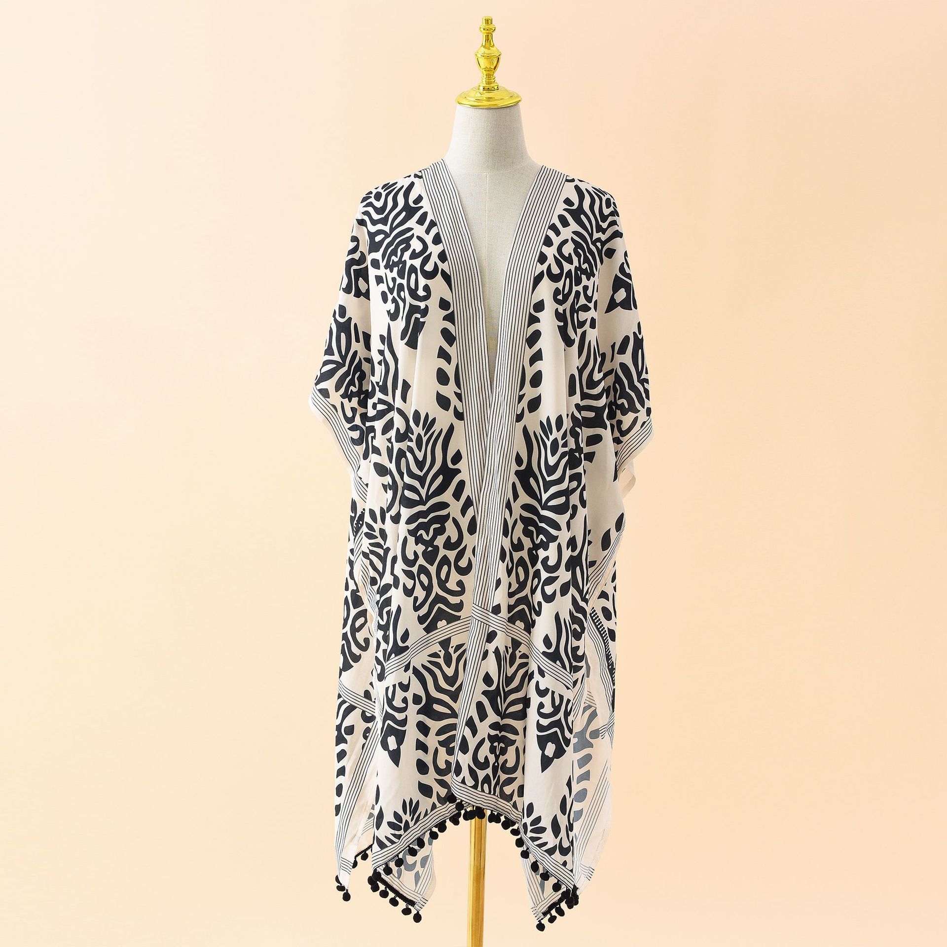 Весенне-летняя шифоновая шерстяная блузка с бахромой средней длины для путешествий, солнцезащитная, удобная, высококачественная, уникальная, персонализированная одежда чёрный