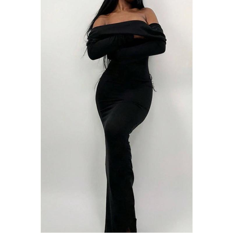 Весенне-осеннее женское платье, модное сексуальное, с одним лацканом, с открытой спиной, с длинным рукавом, тонкое, длинное платье XXL чёрный