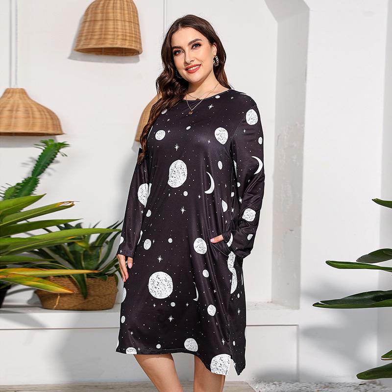 Весенне-осеннее женское платье-футболка с граффити, повседневная домашняя одежда больших размеров, свободные платья средней длины с карманами и принтом 3XL чёрный