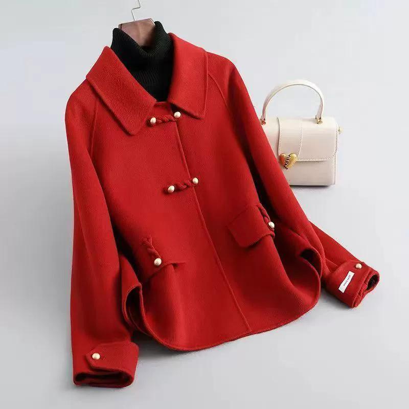 Весенне-осеннее женское шерстяное пальто, короткое, маленькое, двустороннее флисовое пальто, модный китайский стиль, свободный шерстяной топ с пряжкой M