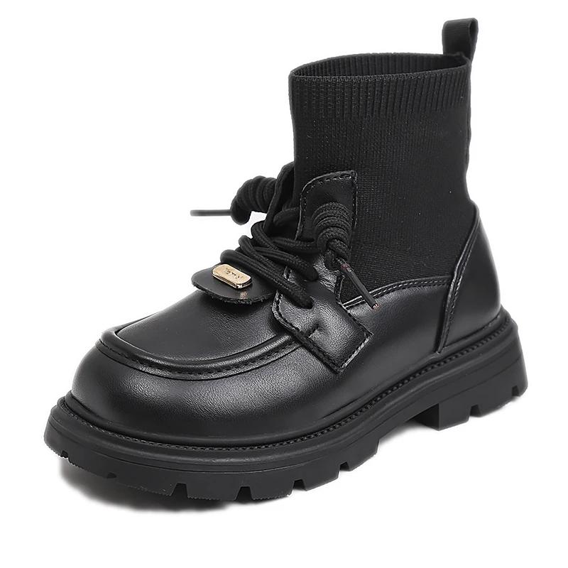 Весенне-осенние детские ботинки для девочки, пэчворк, модные, принцесса, носки-ботинки, повседневные, универсальные, детские ботильоны на платформе, простые 26 чёрный